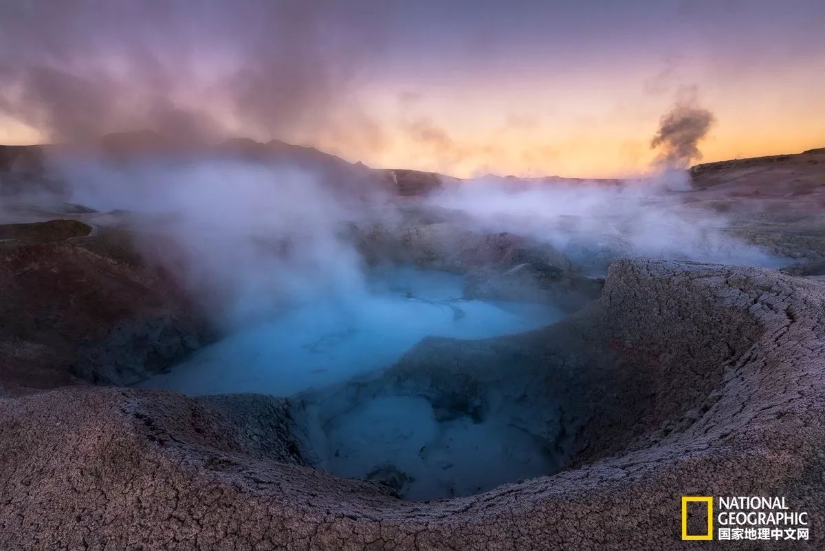 日出时刻的地热带,到处冒着热气,显得十分的梦幻。