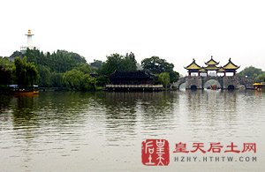 瘦西湖全长4.3公里,游览面积30多公顷,有长堤、徐园、小金山、吹台、月观、五亭桥、凫庄、白塔等名胜。湖区利用桥、岛、堤、岸的划分,使狭长湖面形成层次分明、曲折多变的山水园林景观。