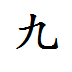 ◎ 数目,八加一(在钞票和单据上常用大写“玖”代):九归。