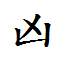 (指事。小篆字形,“凵”象地陷形,读kǎn。“乂”表示这里可陷人。“兇”是会意字,从儿(人),在凶下。本义:不吉利)