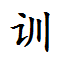 ”;演变为繁体楷书“訓”;演变为简体楷书“训”。“训”引申为“教导、教诲;可以作为法则的话;典式、法则;解释词的意义:训诂”等义。训练:教练、操练兵士;是指有计划有步骤地通过学习和辅导掌握某种技能。有意识地使受训者发生生理反应,从而改变受训者素质、能力的活动。和教育一样,训练也是培养人的一种手段。家训:父母教导子女持家创业、待人接物的话;对子孙立身处世、持家治业的教诲。训导:教训开导,使能向好的方面不断地生长发展。