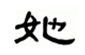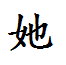 用于女性第三人称;亦用以代称国家,山河,旗帜等,表示敬爱。