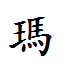隶书“”,由王“”和马“”组合造出。王“”指玉石;马“”指码,兼表发音;玛“”本作码“”,当“码”用于其他字义后,“玛瑙石”的本义消失,就另造“玛”代替。把石“”写成王“”,强调是玉石。组合起来表示:。演变为繁体楷书“瑪”;演变为简体楷书“玛”。“玛”在现代汉语中用于双音词“玛瑙”。玛瑙:也作码瑙、马瑙、马脑等;是一种矿物,为结晶石英、石髓及蛋白石的混合物;有赤、白、灰各色相间,细纹成平行环状波纹,中心部的空隙常附着有石英结晶,可作饰物。