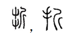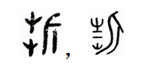 ”指锛子,木工工具,斧子的一种;用斤把树木砍断,断为两段。组合起来表示:砍断、断开。甲骨文字形“