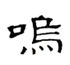 发出喧闹声〖hoot〗。如:呜哨(涨水声);呜哩呜喇(呜哩哇啦。多形容乱嚷嚷声);呜呜(歌咏声;吟咏声);呜轧(吹角声);呜呜咽咽(悲泣声)