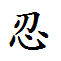 耐,把感情按住不让表现:忍耐。忍痛。忍受。容忍。忍俊不禁(忍不住笑)。