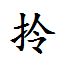 拎 līn 提:拎水。拎提包。 笔画数:8; 部首:扌; 笔顺编号:12134454