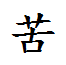 通“盬”。粗劣〖coarse〗。如:苦盐(粗盐,颗粒盐);苦功(粗工艺);苦事(粗制滥造)