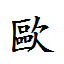 通“瓯”。种族名〖Onatitonality〗。如:欧人(古越族的一支);亦为地名。如:欧越(即瓯越。古越人聚居之地)