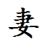 (会意。小篆字形从女,从屮,从又。“屮”象家具形,又是手。合起来象女子手拿家具从事劳动的形象。本义:男子的正式配偶)