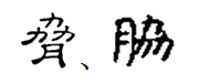 ”。演变为繁体楷书“脅、脇”;依据行书字形“