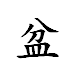 (形声。从皿,分声。皿,泛指盘碗一类器具。本义:盛东西或洗涤用的器皿。通常为圆形,口大底小,比盘深)