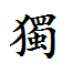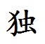 单一,只有一个:独唱。独立。独霸。独裁。独创。独特。独辟蹊径(喻独创新风格或新方法)。独具慧眼(形容眼光敏锐,见解高超)。