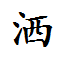 ”;演变为楷书“洒”。“洒”引申为“把水散布在地上,使水或其他东西分散地落下,东西散落”等义。古文中多用“灑”代替“洒”,简化汉字时用又用“洒”代替了“灑”。“灑”成了“洒”的繁体字,“洒”成了“灑”的简体字。“洒”本读xī,合并了“灑”后改读sǎ。