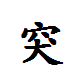 又如:突杌(高耸的样子);突目(凸眼睛);突立(耸立);突过(高出;超越);突黑(深黑色);突险(险峻貌);突驾(凌驾;超越);突镜(凸透镜;放大镜);突怒(盛怒;突起的样子)