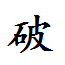碎,不完整:碗打破。破灭。破旧。破败。破落。破陋。破颜(转为笑容)。破绽(衣服裂开,指事情或说话的漏洞或矛盾)。牢不可破。