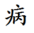 又如:孩子病了;病状(请病假的文状);病忘(患健忘的病症);病恹恹(久病慵懒的样子)