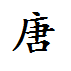 ”。演变为楷书“唐”。由于制陶时人们用杵子捣泥,发出“唐唐”响亮的声音,“唐”就引申为“说大话,夸大、虚夸,空、徒然”。“唐”借用为朝代名,传说中由尧所建的古朝代名,后来的“唐朝”。