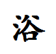 洗身,洗澡:沐浴。浴室。浴场。浴缸。浴巾。浴血(全身浸于血中,形容战斗激烈)。