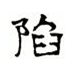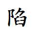 (会意兼形声。从阜(fù);从臽,臽(xiān)亦声。据金文,象人掉进陷阱形。本义:坠入,掉进)