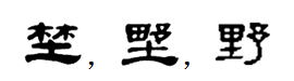 ”指山林中的土地神;土地神让田地、山林给予人们生活必需品;田地、山林那就是村邑的外面了。演变为楷书“埜、壄、野”,后“野”兴“壄、埜”废。“野”引申为“郊外、村外;城邑村镇外面的、没有人烟的田地山林地带;界限、范围;指不当政的地位,与‘朝’相对;不讲情理、没有礼貌;巨大而非分的欲望;不受约束;不是人工驯养或栽培的(动物或植物)”等义。