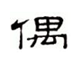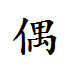 (形声。从人,禺声。禺,通常读yù,又音ǒu。本义:仿人形制成的木偶)