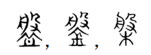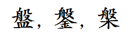 ”;演变为繁体楷书“盤、鎜、槃”;依据行书字形“