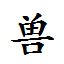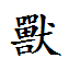 (象形。小篆字形。上象耳,中象头,下象足踩地。兽本是禽兽的总称。古另有“獸”字,指捕捉禽兽的活动。二字通用。本义:禽兽的总称)
