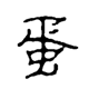 禽类或龟、蛇等所产的卵〖egg〗。如:蛋花(蛋汤煮熟后,凝成絮团似的许多小蛋块的俗称);蛋青色(指如鸭旦壳般的淡青色)
