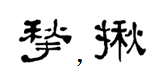 又如:揪捽(抓住;扭住);揪扯(揪抓拉扯);揪撇(抛到一边);揪采(瞅睬。看顾;理睬;扭拉);揪痧(民间治疗某些疾病的一些方法。通常用手指揪颈部、咽喉部、额部,使局部皮肤充血)