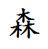 树木众多,引申为众多、繁盛:森林。森立。森森。森然。森郁。