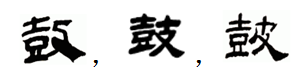 ”,强调“鼓是用皮蒙制的”。演变为楷书“鼔,鼓,皷”,后“鼓”兴“鼔、皷”废。“鼓”引申为“敲击或拍打使发出声音,发动、使振作起来,高起、凸出;形状、声音、作用像鼓的”等义。