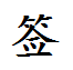 ”是“剑”的省略,指剑,兼表发音;用竹子制作的象“剑”形状的细尖的竹片,用于夹在书中,作为读书、内容的标识、标记。组合起来表示:夹在书册中作为读书、内容的标识、标记的东西。演变为繁体楷书“簽”;演变为简体楷书“签”。“签”引申为“亲自写姓名或画上符号,书册里作标志的纸片或其他物体上作标志的东西”等义。简化汉字时用“签”合并了“籤”,“籤”成了“签”的繁体字,“签”成了“籤”的简体字。“签”的字义扩展出“刺、插、刺刻;用竹木等物做成的细尖棍子或片状物,亦用作量词, 如:串;插在死刑犯背部的标识长牌”等义。