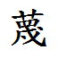 (会意。从苜(mò),从戍。“苜”是眼睛歪斜无神,“戍”是戍守人。合而表示人过于劳倦眼睛歪斜无神。本义:眼睛红肿看不清)