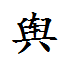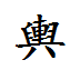 ”。演变为繁体楷书“輿”;演变为简体楷书“舆”,把“車”写成“车”。“舆”引申为“众人的”,如:舆论~大众的言论。