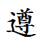 又如:遵依(遵照);遵巡(顺着;沿着);遵序(依次,顺着次序);遵时(顺应时势);遵海(沿着海岸);遵陆(沿着陆路)