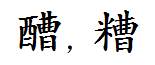 ”;演变为楷书“醩、糟”,后“糟”兴“醩”废。“糟”引申为“做酒时过滤剩下的渣子、酒渣,腐朽、腐烂,坏、使变坏,变质的、变坏的,作践、损害”等义。