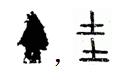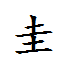 (会意。“从重土”。本义:古玉器名。长条形,上端作三角形,下端正方。中国古代贵族朝聘、祭祀、丧葬时以为礼器。依其大小,以别尊卑。又作珪)