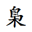 ”指树木;一种与鸱鸺相似的鸟称为“猫头鹰”,古人认为“猫头鹰”是一种凶猛的恶鸟、不吉祥的鸟,传说“猫头鹰”飞落在谁家鸣叫,谁家就会死人;“猫头鹰”是昼伏夜出的鸟,人们白天捕捉到后,就会砍下它的头悬挂在树上,用以吓唬其他猫头鹰不要再来。组合起来表示:猫头鹰。演变为隶书“