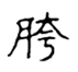 又如:胯子(腰的两侧和大腿之间的部分);胯夫(指韩信。汉淮阴侯韩信早年未得志时,,有人欺侮他,让他从胯下爬了过去)。又指衣服掩蔽股胫的部分。如:胯衫(古时宦者之服)