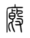 ”指持械击打,这里指持械搅拌;组合起来指饲养员持棍棒搅拌草料喂养牲口;在马棚、马房饲养牲口;喂养牲畜时会在草料中加入一些谷糖或面粉,再加适量的水搅拌均匀喂养,遇到干重体力活时,会加喂黑豆、豌豆、黄豆等豆类;“马无夜草不肥”,这里的夜草,就是半夜加喂一顿带黑豆、豌豆、黄豆等豆类的草料,使马儿长膘,马儿才长途跋涉;饲养牲口当然是在马棚、马房中进行了。组合起来表示:饲养牲畜的棚屋。演变为隶书“