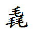 ”指毛发;在古文字中三个指众多的意思,指动物身上的众多的、密密麻麻的毛。组合起来表示:鸟兽身上的毛。篆文“