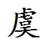 (形声。从虍(hū),吴声。虍,虎头。本义:神话传说中的兽名。即“驺虞”)