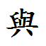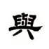 ”。演变为楷书“與”。“与”是“與”的脱形字。引申为“和、跟,交往、友好”等义。