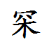 罙 shēn 古同“深”。 笔画数:8; 部首:冖; 笔顺编号:45341234