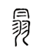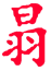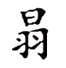 篆文“”(来源于其它字的字形),由冃“”和羽“”组合造出。冃“”指帽子;羽“”指翅膀;鸟儿飞翔是翅膀是伸展开的,且上下扇动;鸟儿落地后翅膀会放下收起,就象帽子一样闭合、扣起来了。组合起来表示:鸟儿落地后翅膀下垂收起。演变为隶书“”(来源于其它字的字形),把冃“”写成“”,把“”写成“”;演变为楷书“”,把冃“”误写成“日”。“”引申为“落下、放下、倒下、下垂”等义。