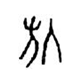 甲骨文“”,由树干“”(树干上还有枝杈)和一条曲线“”(飘扬的布条)刻画出来,表示:旗。金文“”,树干由“”变为“”,下面多了个树杈,把“”写成“”;篆文“”,把“”写成方“”,把“”写成“”;演变为楷书“㫃”。“㫃”引申为“旌旗飘扬的样子”等义。“㫃”是“旗”的本字,主要用作造字部件,成为“旗”的省略字形,作为造字部件时写成“”。